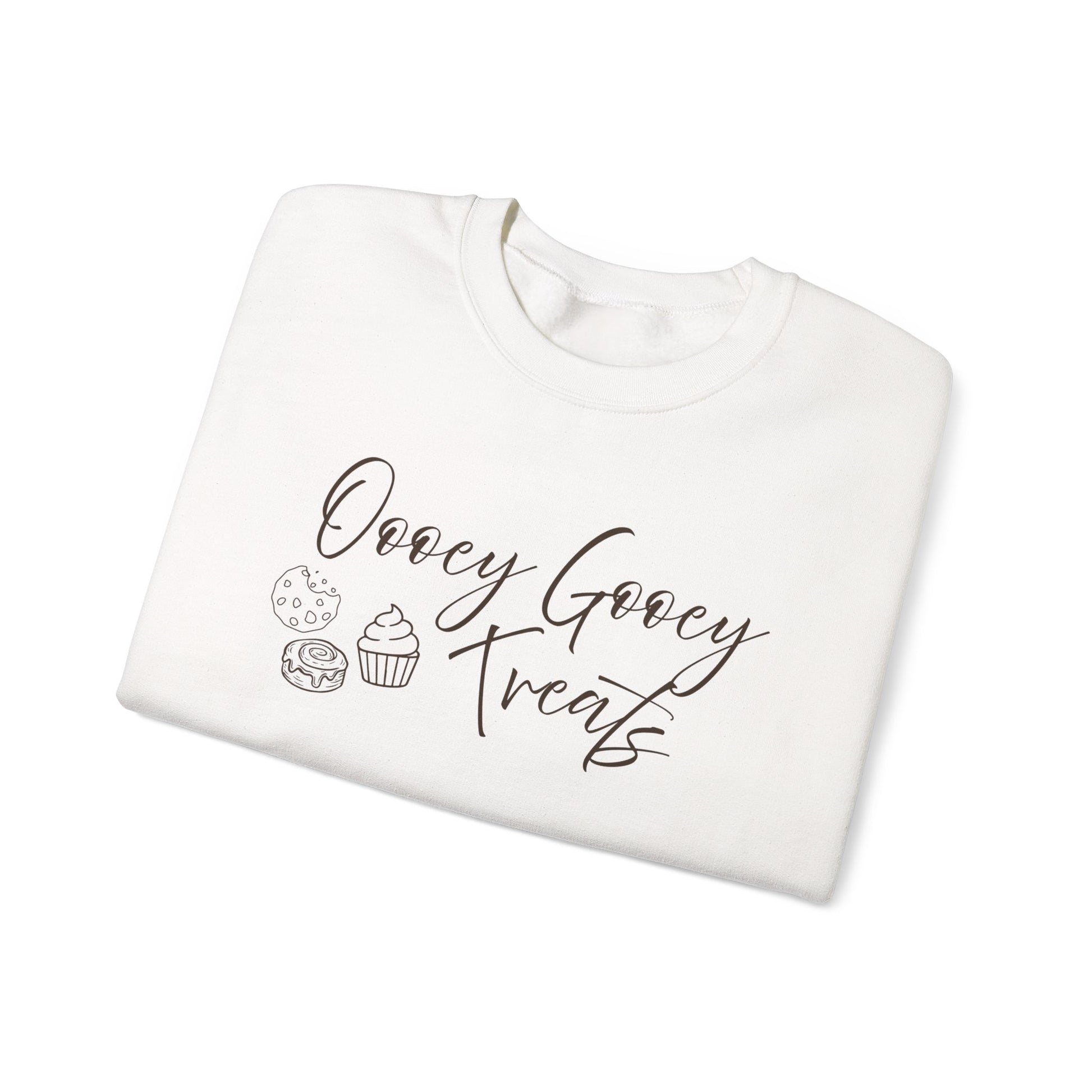 This Oooey Gooey Treats Logo long sleeve tee exudes a cozy and casual vibe, perfect for lounging at home or running errands. It is ideal for adults looking for a comfortable and stylish wardrobe staple. This tee is relevant for everyday wear, lounging, casual outings, and as a gift for birthdays or holidays.
